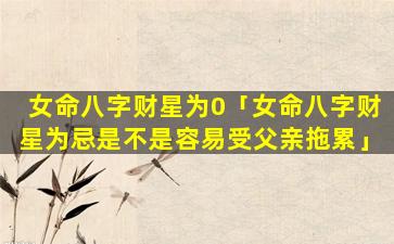 2、女命八字财星为忌是不是容易受父亲 🐞 拖累
