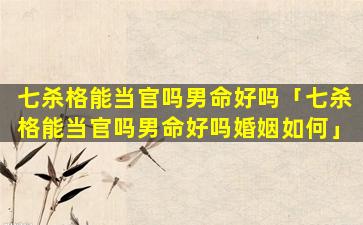 3、七 🐎 杀格能当官吗男命 🌿 好吗婚姻