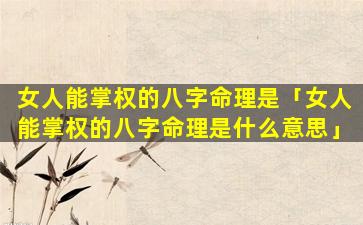 2、女人能掌权的八字命理是什么意思 🐕