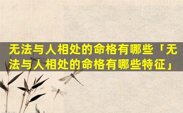 2、无法与人 🌻 相处的 🐶 命格有哪些特征