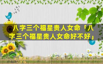 2、八字三个福 🕸 星贵人女命好不 🐼 好