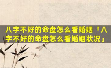 2、八字不好的命盘怎 🐱 么看婚姻状况