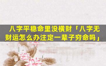 4、八字平稳 🦉 命里没横财什么意思 🌵