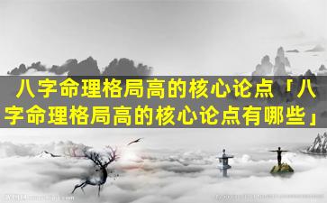 八字命理 🦉 格局 🐱 高的核心 🌵 论点: