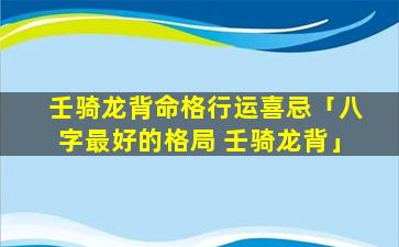1、壬骑 🦢 龙背命格行运喜忌