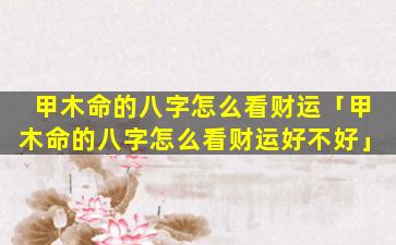 3、甲木命的八字 🐟 怎么看财运好坏