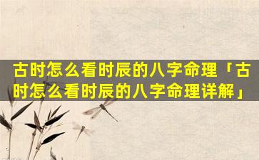 古时看 🌸 时辰 🐴 的八字命 🐧 理