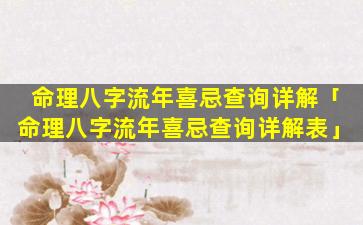 命 🌼 理八字流年喜忌查询 🐝 详解