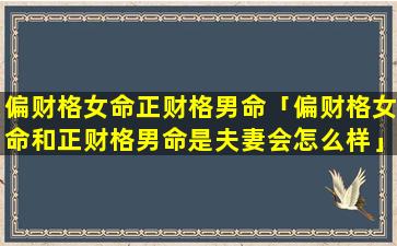 2、偏财格女命和正财格男命是夫妻 🌲 会怎么样
