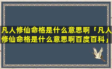 2、凡人修仙命格是 🐞 什么意思啊百度百科