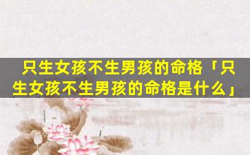 3、只生女孩不生男孩的命 🦊 格怎么样 🌳