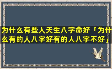 1、为什么有些人天 🐧 生八字命好