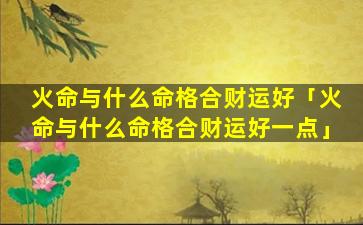 火命与 🦈 以下命格 🕸 合财运 🕊 好: