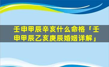 4、壬申甲辰 🦅 辛 🐴 亥什么命格好