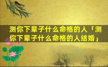 1、测你下 🌳 辈子什么 🐘 命格的人