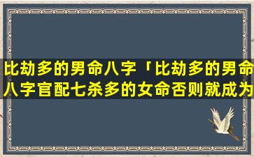 因此,比,劫,多的男命是否不好需要具体情况具体 🦉 分析不能一概而论。