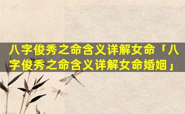 八 🐯 字 🐈 俊秀之命含义详解女命 🐎 运