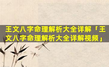王文 🦄 八字命 🌸 理解析大全详解