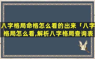 2、八字格局怎么看,解析八字格局查 🦟 询表