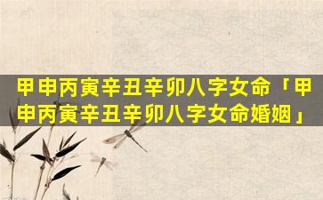 2、甲申丙寅辛丑辛卯 🦢 八字女 🐧 命婚姻