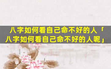 2、八字 🐼 如何看自己命不好 🌳 的人呢