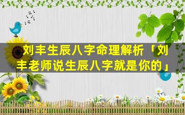 2、刘 🐯 丰老师说生辰八 🐒 字就是你的