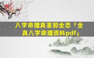 2、全真八字 🐦 命理资料pdf