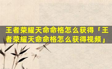 1、王 🐯 者荣耀天命命格怎么 🐈 获得