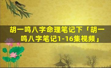 3、胡一鸣八 🦉 字全部讲 🌺 解视频