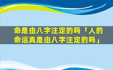 2、人的命 🦍 运真是由八字注定的 🌻 吗