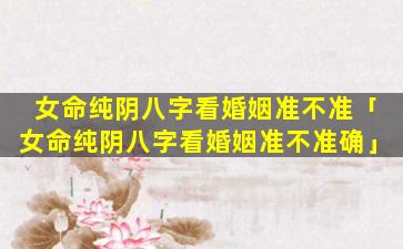 3、女命纯阴八字 🌳 看婚姻准 🕷 不准呢