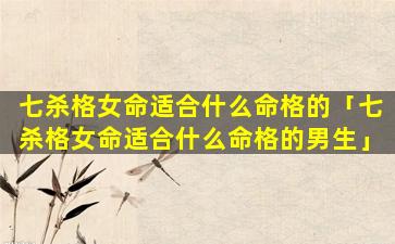 2、七杀格女命适合什 🐼 么命 🐬 格的男生
