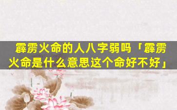 1、霹雳火命的人八字 🐞 弱吗 💮