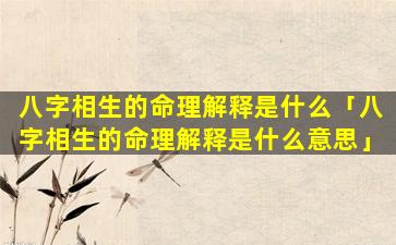 2、八字相生 🐡 的命理解释是什么意 🐵 思