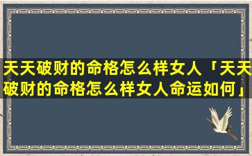 2、天天破财 🌸 的命格怎么样女人命运如何