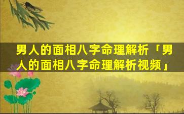 男人 🐘 的面相八字 🐵 命理解析 🌻 视频