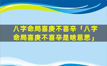 2、八字命 🐡 局喜庚 ☘ 不喜辛是啥意思