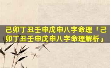 2、己卯丁丑 🐞 壬申戊申八字命理 🐠 解析