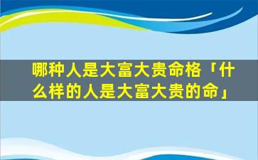 1、哪种人是 🐒 大富大贵 🕸 命格