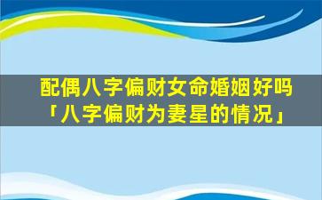 配偶八字偏 🐧 财女命婚姻好不好 🦟