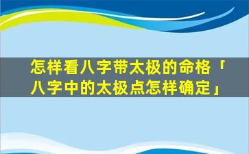 2、八字 🐕 中的太极点怎 🐶 样确定