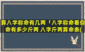 2、八字称命看你命有多少斤两八字斤两 ☘ 算命 🕊 表(图文)