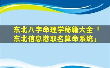 1、东北八字命理 🌿 学秘籍大 🌿 全