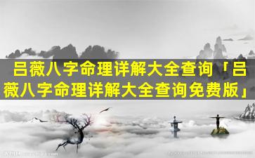 1、吕薇八字命理详 💐 解大全查询 🐟