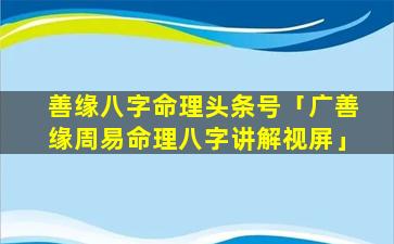 2、广善缘 🌾 周易命理八 🍁 字讲解视屏