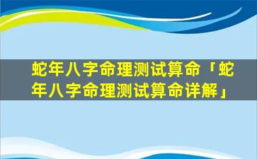 2、蛇年八 🐱 字 🐝 命理测试算命详解