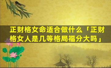 1、正财格女 🌾 命适合做什 🐠 么