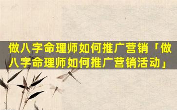 3、做八字 🌲 命理师如何推广营 🌵 销策略