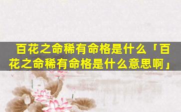 1、百花之命稀有命格是什么 🦆