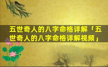 4、五世奇人的 🪴 八字命 🦈 格详解图